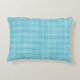 A blue and white gingham-patterned pillow on a beige surface. The simple design and soft colors create a calm and cozy ambiance.