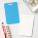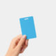 a blue background with a black and white cat on to ID badge