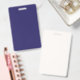 a blue background with a clock on it ID badge
