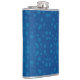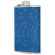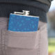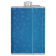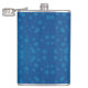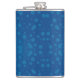 A blue hip flask with a silver cap features a pattern of various-sized lighter blue polka dots, conveying a playful and modern design.