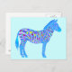 From mailing a cute message to framing it as mini art, this original pop art style blue zebra postcard is super colourful with a virtual rainbow of colours in his stripes and polka dots. Set on a pale blue background, this unique zebra postcard is designed to bring smiles.