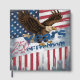 A bold, distressed illustration of a soaring bald eagle combined with vintage American symbolism. The worn textures and retro style evoke strength, freedom, and resilience, inspired by classic poster art.