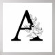 Elegant A letter monogram poster with flowers and lives. Black and white botanical illustration. Initial letter poster nurseries, bedrooms, part of home decor. Personalized gift idea.