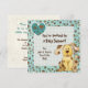 This Birth Announcements features adorable puppy original water colour art work by Audrey Jeanne Roberts. The design has dog paw prints in an all over pattern on top of a plaid check background in blue. There is a heart and a sweet doggy wagging his tail, along with your shower announcement text, On the reverse side there is room for you to personalise your shower invitations using the easy template fields provided. You might also like: