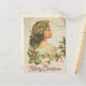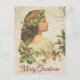 Merry Christmas Christmas vintage card It depicts the profile of a girl wearing a holly wreath. A branch of holly is also drawn there