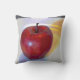 If you love apples, then this is your Throw Pillow! The artwork is a photo of a bright red shiny apple. The original photography by ZoeSPEAK is a closeup of the fruit photographed as a still life on a white plate. The photo brings out the pastel colours in the shadows and background. The apple is in shades of red from light to dark, with a white highlight and a brown, curving stem. Enjoy the eye appeal of fresh fruit anytime with this apple 16” throw pillow.