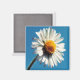 A single white daisy with a golden yellow centre under a clear blue summer sky.