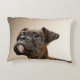 A Brindle Boxer puppy looking up curiously. Decorative Cushion