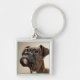 A Brindle Boxer puppy looking up curiously. Key Ring