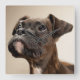 A Brindle Boxer puppy looking up curiously. Square Wall Clock