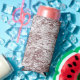 a brown and white background with a rough texture seltzer can cooler