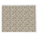 A brown rug with a geometric motif is partially co calendar