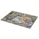 This glass square cutting board is fun there are a bunch of grumpy cartoon birds created in watercolors.