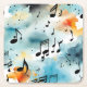 A bunch of musical notes scattered everywhere in a sky with white clouds