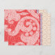 • Background: A rich red colour with an elaborate and dense pattern, adding texture and depth.