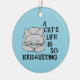 A cat's life is so exhausting text with the image of a sleeping grey cat, with a smile on it's face, is a funny design for cat lovers.