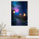 A Charming Wooden Path Illuminated by Lanterns Poster