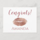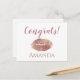 A chic congrats, this postcard features a lovely pair of lips in the middle. Above the lips is "Congrats" written in lovely mauve cursive font with her name written underneath the design. It makes a great postcard for a new mother, newly engaged woman, newly married woman, or a woman celebrating a promotion at work, graduation, etc. Customise yours today!