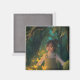 Step into a world of quiet wonder. This magnet captures a child surrounded by glowing butterflies beneath tall trees, bathed in warm orange light. A small piece of magic to brighten any space. It is soft, dreamy, and filled with the calm of a fairytale forest.