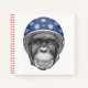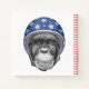 This design features a portrait of a chimpanzee in a patriotic motorcyle helmet.