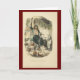 This Christmas card features a vintage illustration of Scrooge being visited by the ghost of Christmas Present, from A Christmas Carol, by Dickens.