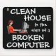 Fun mousepad for Zazzlers and other computer geeks alike. It features art work of a woman at a computer. Text reads: "a clean house is the sign of a broken computer" **Graphic used with permission of the Nova Development Corporation**