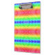 A clipboard with a colorful, kaleidoscopic rainbow pattern, featuring wavy, symmetrical lines in red, orange, yellow, green, blue, and purple tones.