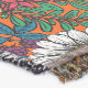 A quality printed throw has its advantages. This is a much finer weave throw than its loopier cousins, and though lighter, it is worth the investment for custom room accessorizing. The back is much prettier than the typical brown, and the fringe on the long sides very vivid, the selvage nicely done. Before photographing, I washed the throw in cold water, delicate, with a thicker woven throw the same size. On tumble dry low, this throw was dry in half the time as the other. This is a very practical quality if you use throws for furniture covers or to wrap up in frequently. The sleekness of the fabric makes it a great layer for accenting or protecting without the feeling of sitting on too much stuff. Perfect for napping or when you feel a light chill coming on. The color printing is beautiful and on this fabric, matched the design and color of my Photoshop image. This is an advantage for blending room fabrics and colors. The fringe on the short sides prints the colors from the design image and therefore varies from the side fringe. I streaked a white fractal line through the plaid pattern to give the illusion of weaving. This printed as crisp as an illusory thread, and put some white in the short side fringe, showing another advantage of print vs loomed- for artistic purposes, line lines, detail, and color integrity can be planned and preserved. My loomed throws have color limitations and more of a needlepoint texture. Print throws reproduce an exact image. The throw felt a little stiff straight out of the package, but this went away in the first delicate wash. Of course I searched the wash water for ink or bleeding and there was none.