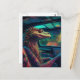 A colourful psychedelic lizard in a vehicle postcard
