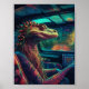 A colourful psychedelic lizard in a vehicle poster