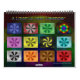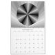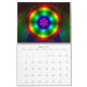 Each page of this calendar contains an image made up of a blocky gradient that creates an optical illusion style effect. These concentric circle and circle-like designs feature a specific colour or colour combination including red, orange, yellow, green, aqua, blue, purple, black, brown, and red and black, lightning styles, and a rainbow. Twelve different images are provided for the interior, giving you a new colour scheme for each month. The size, numbers, and layout of the calendar are customisable.