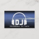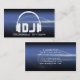 A cool Dj business card template with a stunning design of blue laser lights in the night sky combined with white DJ headphone icon on a dark background.