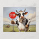 A cow holding a stop sign postcard