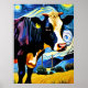 A Cow in The Starry Night Poster