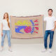 Coyote Wolf Colourful Southwestern Design Desert Custom Personalised Throw Blanket. Background colour can be customised. Coyote - or is it a wolf - sitting next to a desert cactus and howling at the moon. This art design is done in my slices of colour style. The critter is blue, the cactus is yellows and greens and the moon is tones of orange and red. Whether you like southwest design or just feel like howling at the moon...