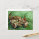 A Crab on Its Back (1888) by Vincent van Gogh is a striking still-life painting featuring a crab lying on its back, rendered with bold, expressive brushstrokes and a vibrant colour palette. The reddish tones of the crab's shell contrast dramatically with the green and yellow background, creating a vivid and dynamic composition. This work demonstrates Van Gogh's fascination with nature's forms and his ability to infuse even the simplest subjects with energy and life.