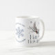 This classic coffee mug features an image of a crescent moon in the sky behind the branch of a pine tree and a couple of pine cones. Snowflakes are around the branch. A decorative image-text Happy Holidays is located under the image. A large snowflake of faux glittering silver colour in the middle of the mug. A template text "With Joy Peace Love" goes around the snowflake on top, a template text "From the Anderson family" goes around the snowflake at the bottom. This design is fully customisable. You can change all the images and you can change or delete two template texts. If you wish to change fonts, colours, sizes or the whole composition of the design feel free to use the "Edit Design" or "Personalise" (as the case may be) button of the blue colour to further customise the design. You will be transferred to the "Design Tool" where you can find fonts, colours, sizes on the right menu; layers, images, geometric elements, backgrounds on the left menu. Just be creative, customise, buy one, enjoy, and be happy!