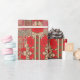 • Top and Bottom Sections: These sections have a greyish-brown background adorned with diamond-shaped motifs and small red floral patterns scattered throughout.