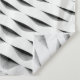 A CURVED FACADE COVERED IN WHITE LATTICEWORK TAPESTRY