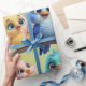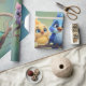 A cute cartoon bird parade in vibrant colours. The birds are designed in bright, colourful tones, including blue, yellow, pink, and blue-green. Their large, expressive eyes radiate joy and curiosity, giving the entire scene a carefree and cute atmosphere. The background is a soft green and features a gentle gradient that draws the focus to the birds.