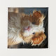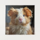 A cute curly Texels guinea pig, its soft fur glistening in the sunlight. The guinea pig is a deep brown colour, with streaks of white and yellow. The fur is perfectly curled, like a mass of living lace.