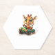 A Cute Giraffe Driving A Car On Road, With A Happy Paper Coaster