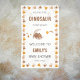 A cute little dinosaur neutral-toned Baby Shower design with a precious little dinosaur baby sleeping nestled against a patterned moon surrounded by stars inside a frame of dinosaur footprints.