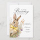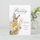 This bunny themed baby shower invitation blends rustic charm with modern elegance, making it ideal for spring baby showers, garden celebrations, woodland themes, or bunny-inspired parties. The soft floral details and warm neutral palette pair beautifully with the playful yellow accents, creating a sweet and inviting announcement for your special event.