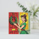 A sweet Christmas card that features a retro illustration of a mid-century woman hanging a holiday wreath on the front door. This card offers a nostalgic vintage vibe You can add a customized holiday greeting on the back or leave the little whimsical poem we put.