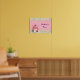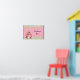 Identify your child's room with this cute poster. Personalise with their name. The image is cute adorable child's toy. A cuddly stuffed pink bunny with floppy ears. Sitting on a background of soft pink hearts and pale green foliage.