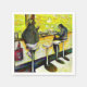 Original painting of two individuals are seated at a counter in a cozy diner. Bright yellow lighting illuminates the scene, creating a warm and inviting atmosphere.