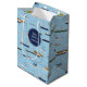 This unique boating themed gift bag features varied size seafaring vessels on a blue background with custom message on a dark blue circle pendant - the pattern includes 2 cargo ships, 2 sailing vessels, 2 antique-style wood boats, 1 fishing boat, a rowboat and a houseboat - close inspection of the pattern reveals people enjoying "A Day On the River" © katz_d_zynes 2020