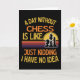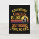 This Chess gift is made for all those who love chess and makes a great Christmas, Birthday or anniversary gift to all those who love chess! Reads A Day Without Chess Is Like Just Kidding i Have No Idea!