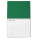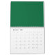 A deep green background contrasted by a crisp whit calendar